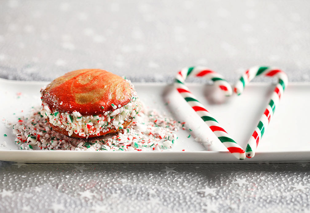 ‘Tis the season for baking! Try something unconventional like these candy cane whoopie pies made with canola oil. The oil gives the pies and other baked goods a moist, soft texture with minimal saturated fat. Photo by CanolaInfo.org.